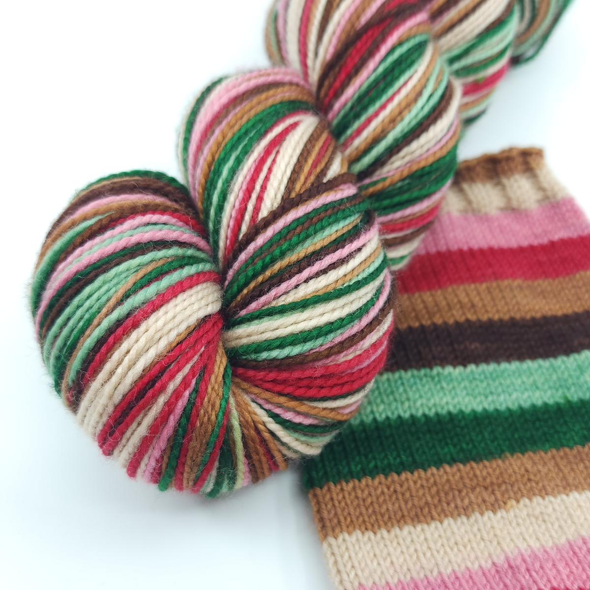 All yarns are dyed with professional acid dyes in my smoke free cat friendly home studio. Each hand dyed skein is unique. Even within the same dye lot there can be variances. Though I keep good notes and do my best to keep this at a minimum, I cannot guarantee against it. If you are working on a larger project it is recommended that you alternate between two different skeins to minimize the visual effect of this variance.