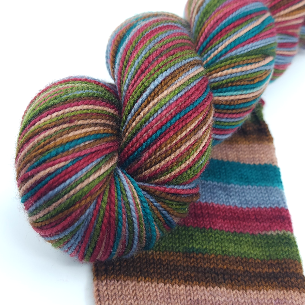 All yarns are dyed with professional acid dyes in my smoke free cat friendly home studio. Each hand dyed skein is unique. Even within the same dye lot there can be variances. Though I keep good notes and do my best to keep this at a minimum, I cannot guarantee against it. If you are working on a larger project it is recommended that you alternate between two different skeins to minimize the visual effect of this variance.